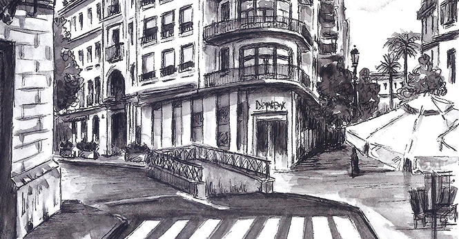 Su obra pictórica recorre los paisajes y calles de Jerez con una mirada distinta: la del cariño, la sorpresa y el detalle. Escenas urbanas convertidas en poesía visual, donde cada línea refleja su amor por lo cercano y lo auténtico.