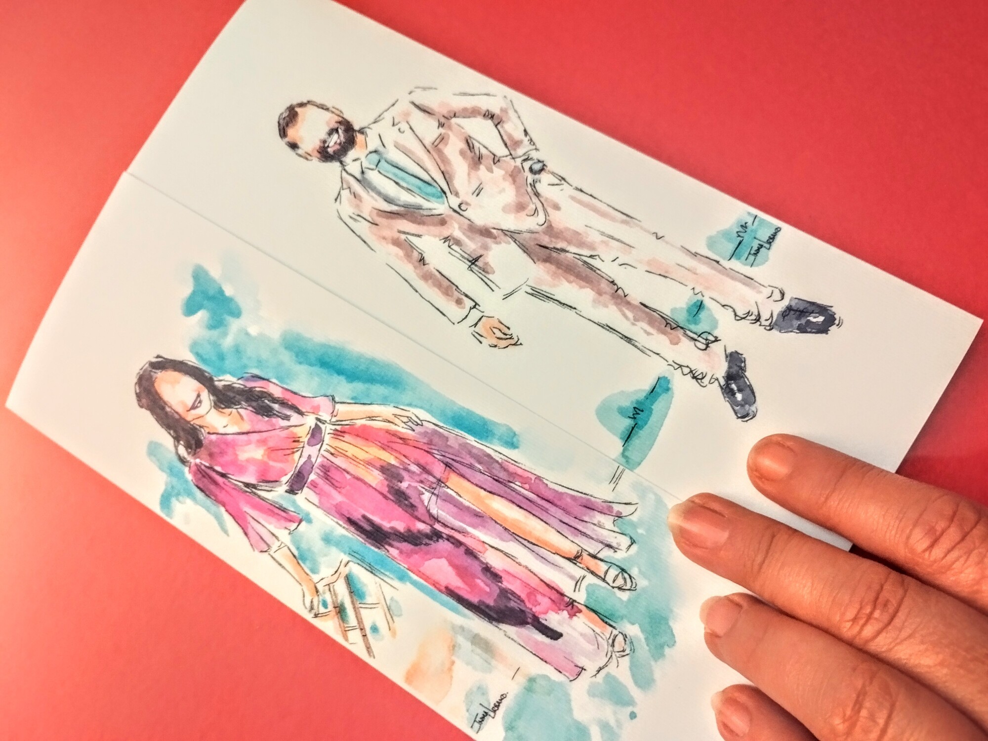 Cada pareja tiene su propia historia, y Inma la transforma en una obra que la hace eterna. A través de sus acuarelas, captura los momentos que definen una relación: una mirada cómplice, un paseo compartido, un abrazo lleno de luz. Su estilo sensible y colorido convierte los recuerdos en escenas llenas de emoción y belleza.